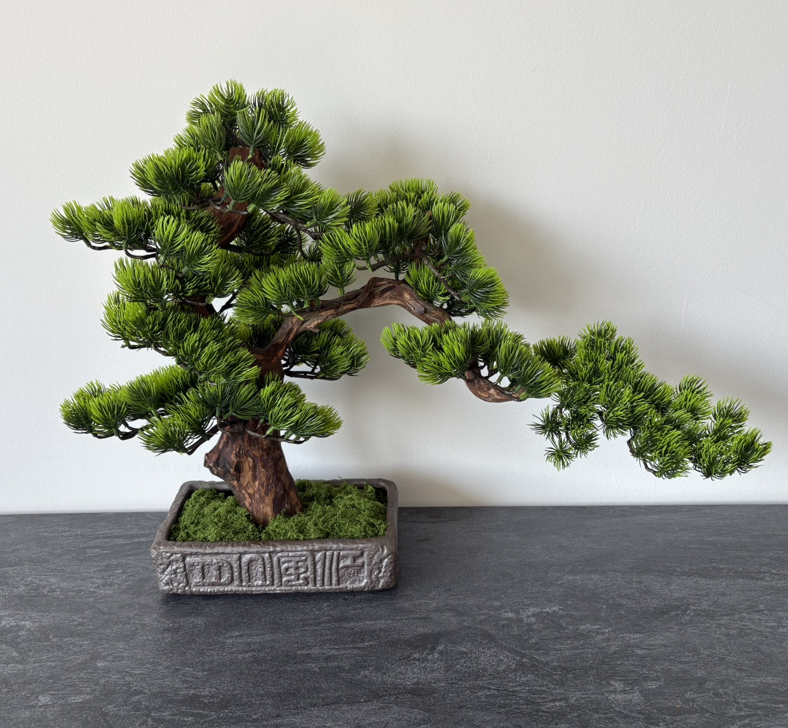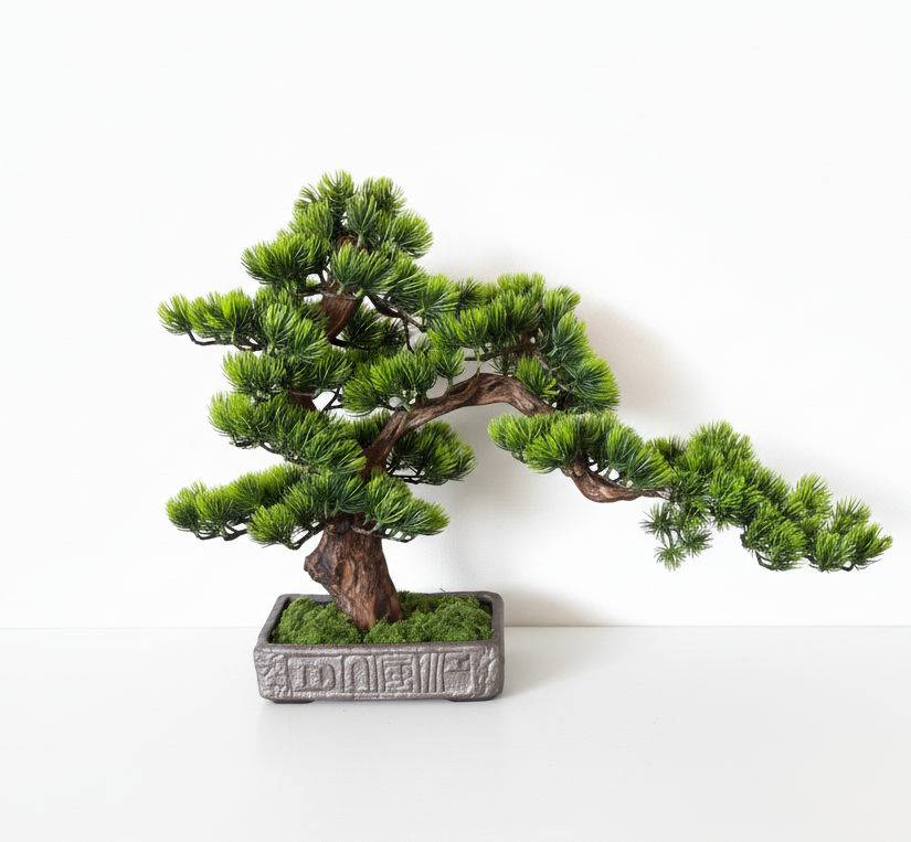 A BonsArt bonsai alapja egy kézzel formált, valódi rododendron törzs, amely megőrzi a fa természetes karakterét. A lombkorona prémium minőségű, élethű műlevelekből áll, amelyek gondozásmentesek, így a fa tökéletes beltéri dísze lehet otthonodnak.