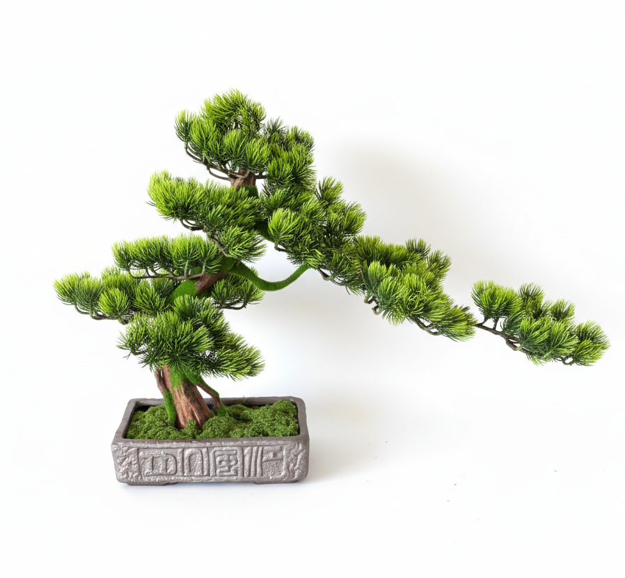 A BonsArt bonsai alapja egy kézzel formált, valódi, mohával borított rododendron törzs, amely megőrzi a fa természetes karakterét. A lombkorona prémium minőségű, élethű műlevelekből áll, amelyek gondozásmentesek, így a fa tökéletes beltéri dísze lehet otthonodnak.