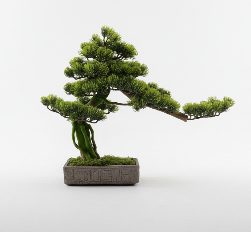 A BonsArt bonsai alapja egy kézzel formált, valódi, mohával borított rododendron törzs, amely megőrzi a fa természetes karakterét. A lombkorona prémium minőségű, élethű műlevelekből áll, amelyek gondozásmentesek, így a fa tökéletes beltéri dísze lehet otthonodnak.
